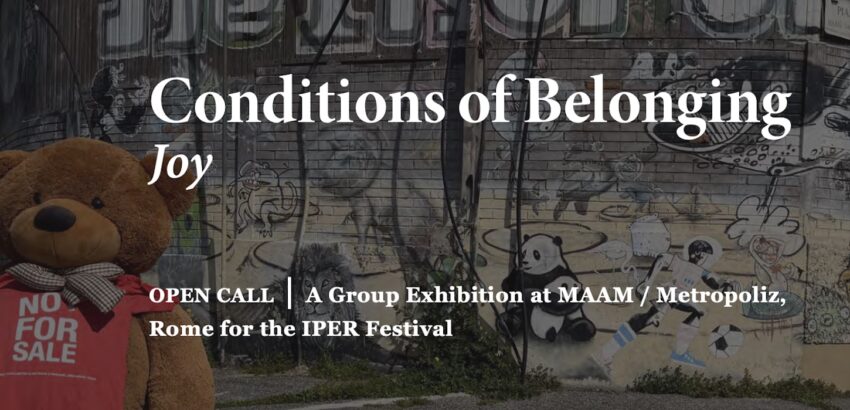 È aperta la call internazionale «Conditions of Belonging: Joy», promossa dall’architetto americano Cory Henry, fellow residente presso la American Academy in Rome, per la realizzazione di una mostra collettiva che si terrà a Roma negli spazi del MAAM – Museo dell’Altro e dell’Altrove di Metropoliz nell’ambito di IPER – Festival delle Periferie.