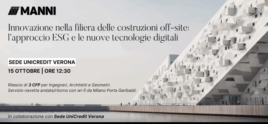Il 15 ottobre 2025, presso la Sede UniCredit di Verona, Manni Group organizza l’evento «Innovazione nella filiera delle costruzioni: l’approccio off-site e le nuove tecnologie digitali”, realizzato con il patrocinio di Adi – Associazione per il Disegno Industriale. Sarà un’occasione di confronto ad ampio raggio, in cui progettazione, industria, ricerca e finanza si incontreranno per […]