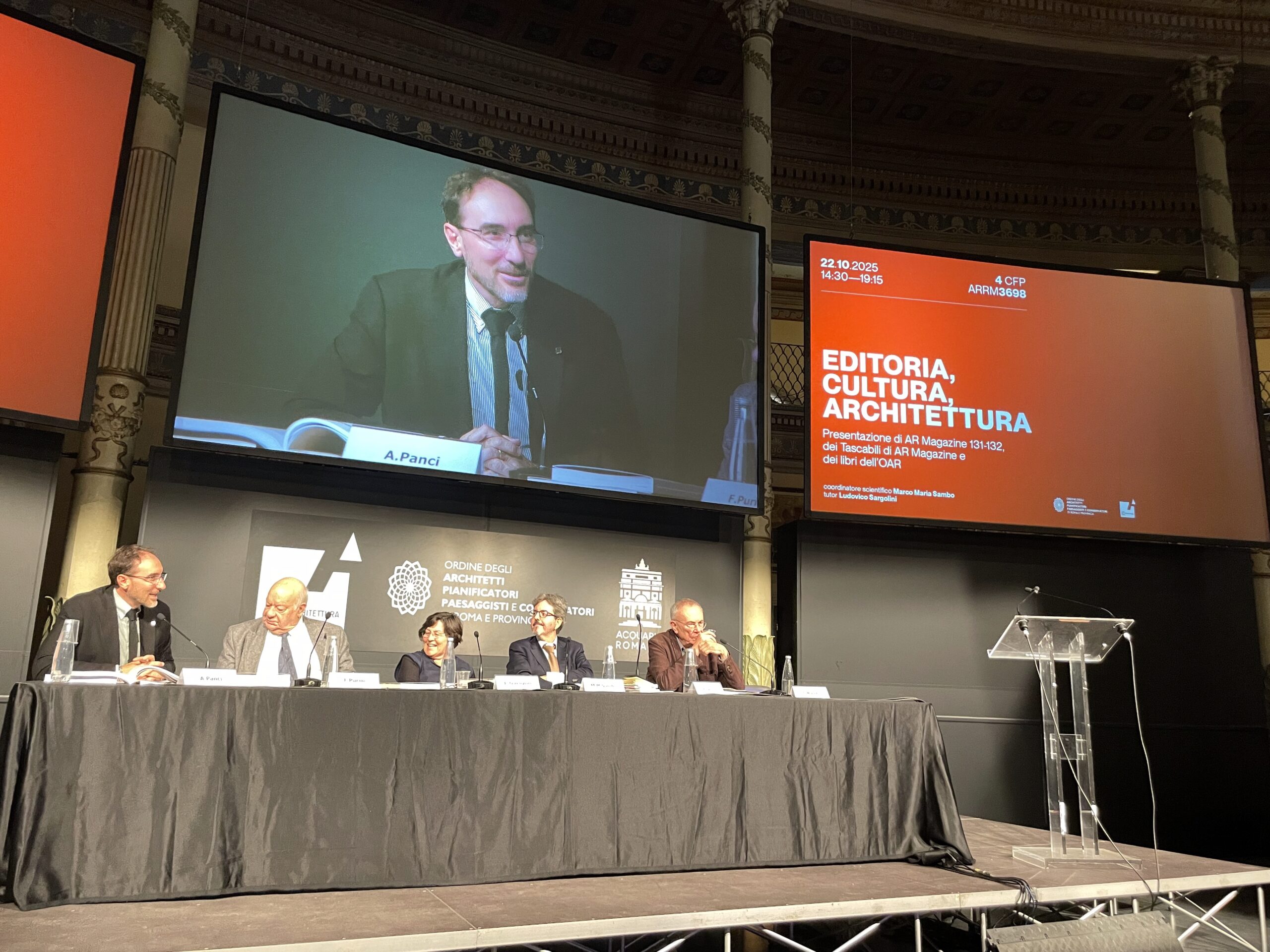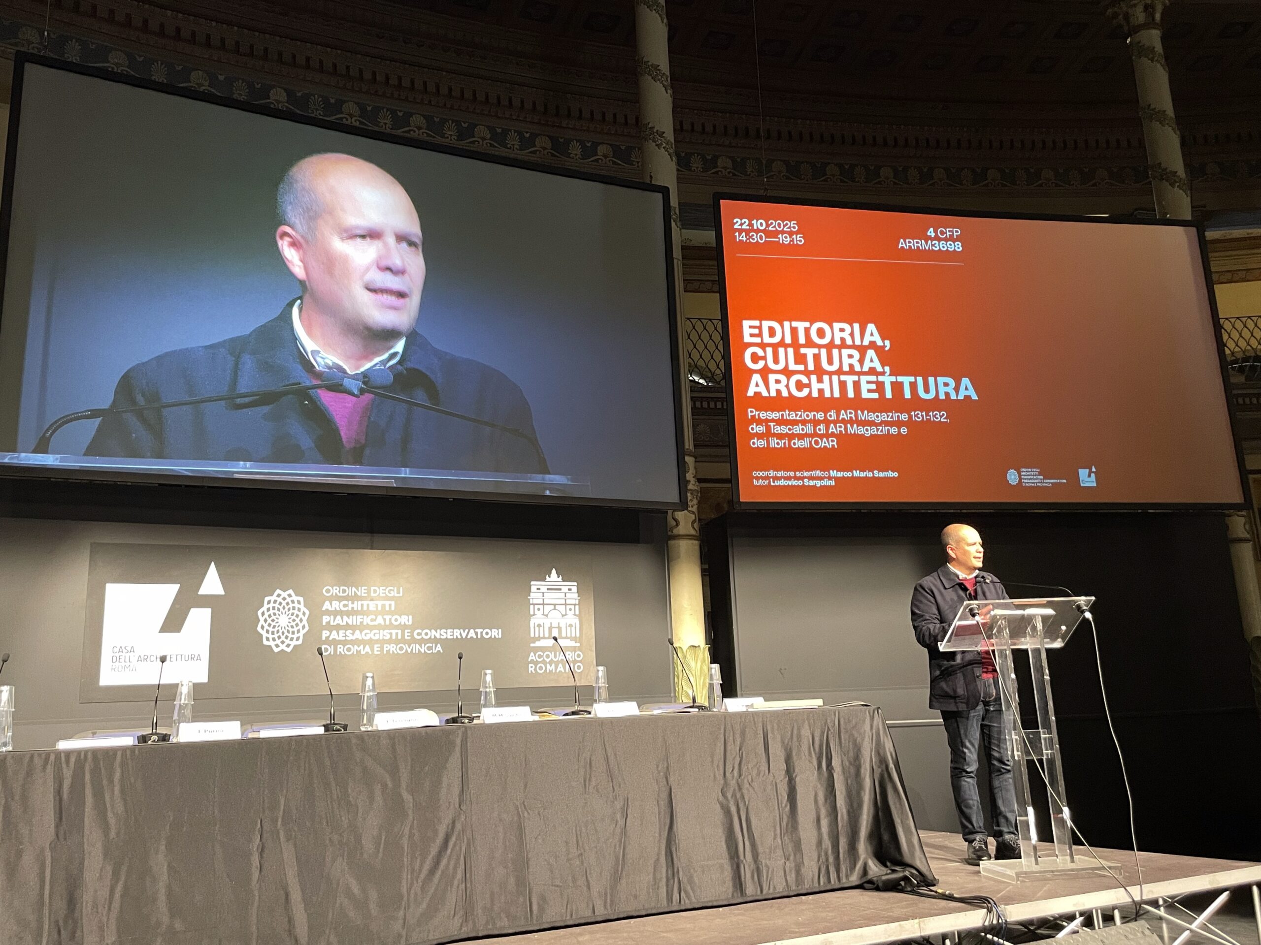 Uno strumento imprescindibile per costruire e trasmettere cultura. Non solo un mezzo di comunicazione, ma uno «spazio» di pensiero, di sedimentazione e di visione. È anche attraverso libri, riviste e pubblicazioni che si consolidano le riflessioni, si tramandano memoria ed esperienze, si alimenta il dibattito sui temi che riguardano il progetto, la città, il territorio. L’editoria di architettura è stata al centro della giornata che si è svolta ieri, 22 ottobre, alla Casa dell’Architettura: un evento – dal titolo «Editoria, Cultura, Architettura», con il coordinamento scientifico di Marco Maria Sambo, direttore editoriale di AR Magazine, la rivista dell’Ordine degli Architetti PPC di Roma e provincia – che ha visto la partecipazione di architetti, docenti e studiosi per riflettere su come l’editoria possa oggi essere un potente strumento di conoscenza e di costruzione culturale, contribuendo a una riflessione collettiva sul ruolo del progetto nella società contemporanea. Durante l’evento sono stati presentate le ultime pubblicazioni dell’OAR: il numero doppio 131–132 di AR Magazine, realizzato in collaborazione con l’Accademia Nazionale di San Luca, la nuova collana dei Tascabili di AR Magazine (dedicati a Bruno Zevi, Paolo Portoghesi, Luigi Pellegrin, Sara Rossi) e i volumi dell’OAR «Opere del Giubileo e Architettura Sacra» e «Featuring the Sculpture Habitat».