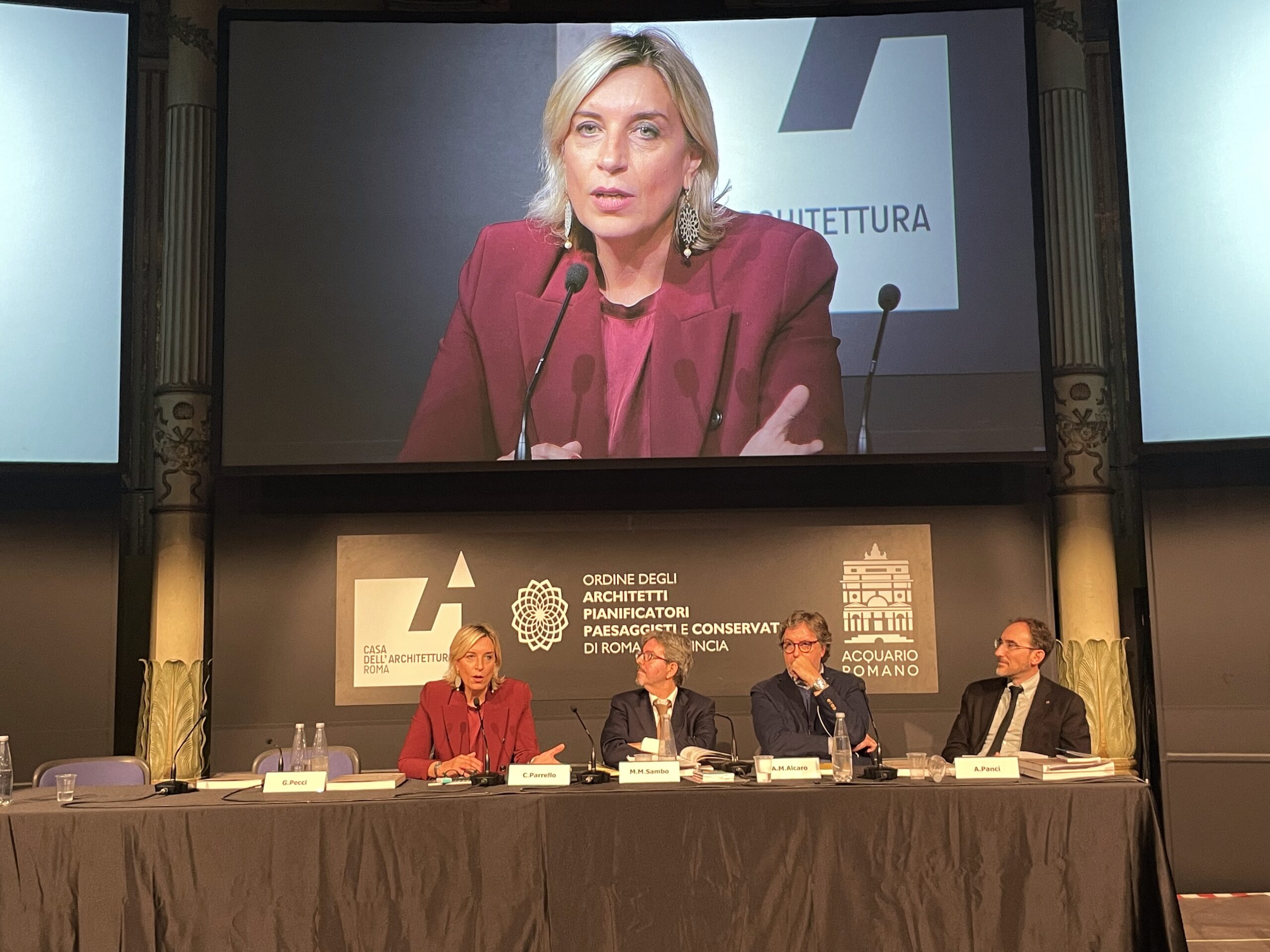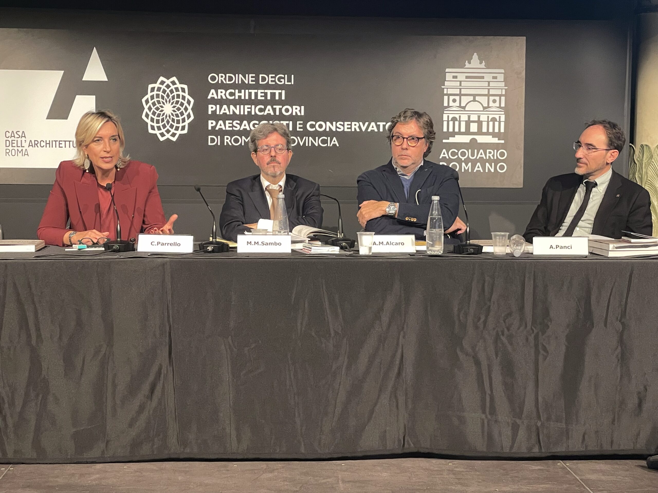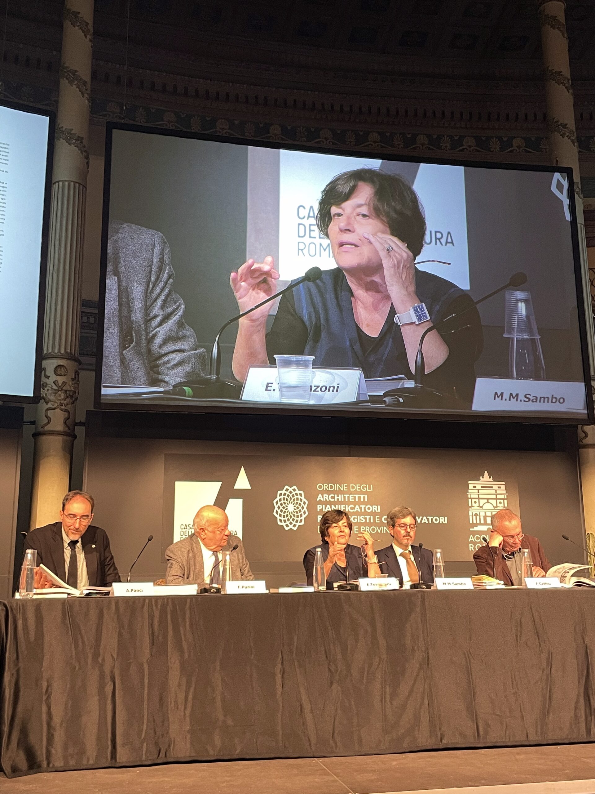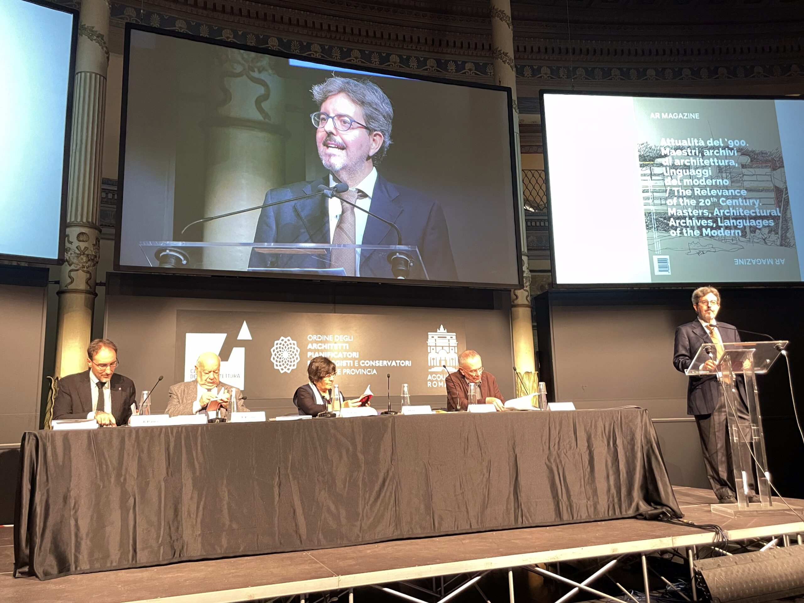 Il valore della collaborazione con l’OAR e la necessità di creare archivi integrati e accessibili sono stati alcuni dei temi al centro della riflessioni di Francesco Cellini, presidente dell’Accademia Nazionale di San Luca, «perché la cultura dell’architettura si trasmette solo facendo conoscenza e costruendo reti di dialogo». Un altro aspetto fondamentale, ha osservato, «riguarda la necessità di non disperdere il patrimonio di materiali — grafici, letterari, archivistici — che documentano l’architettura di qualità. È importante organizzarli e renderli sempre più accessibili, creando archivi coordinati e interattivi, capaci di dialogare tra loro. Sarebbe auspicabile arrivare a un sistema unico, simile al Servizio Bibliotecario Nazionale, dove chiunque possa cercare un architetto e sapere immediatamente in quale archivio si trovano i suoi materiali, invece di doverli inseguire tra istituzioni diverse».