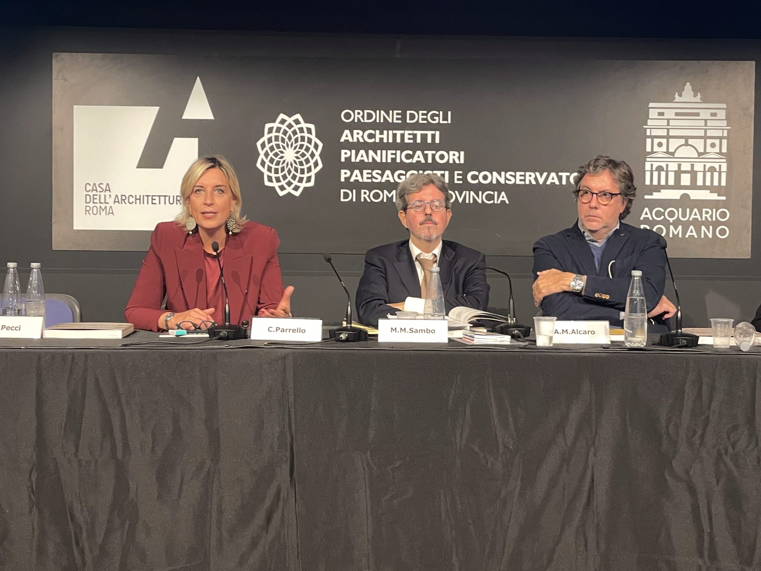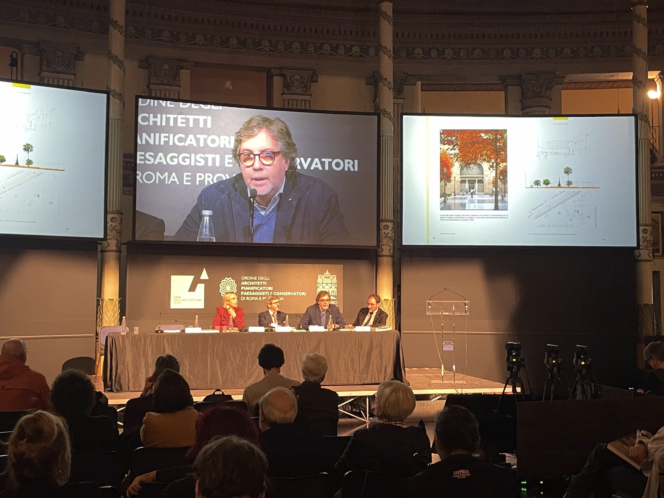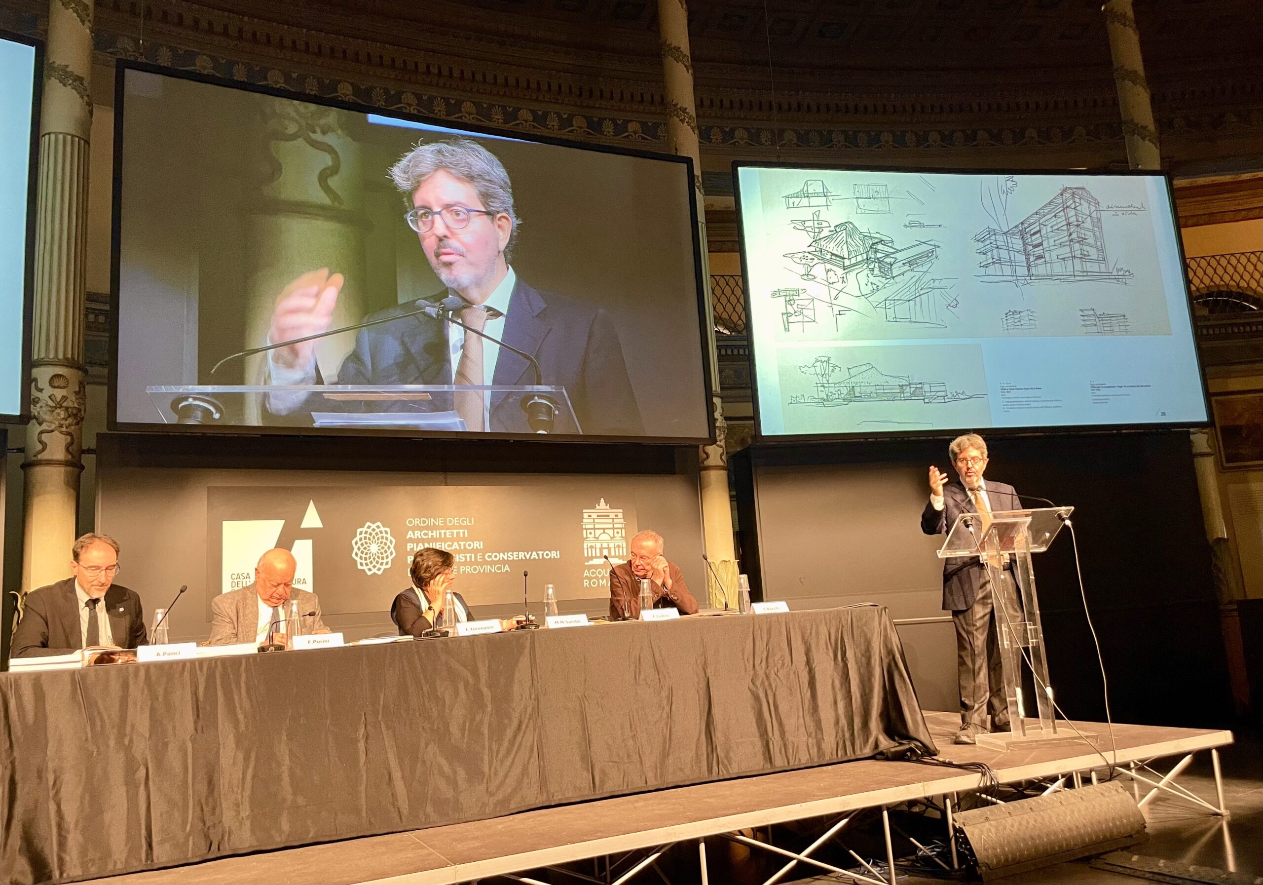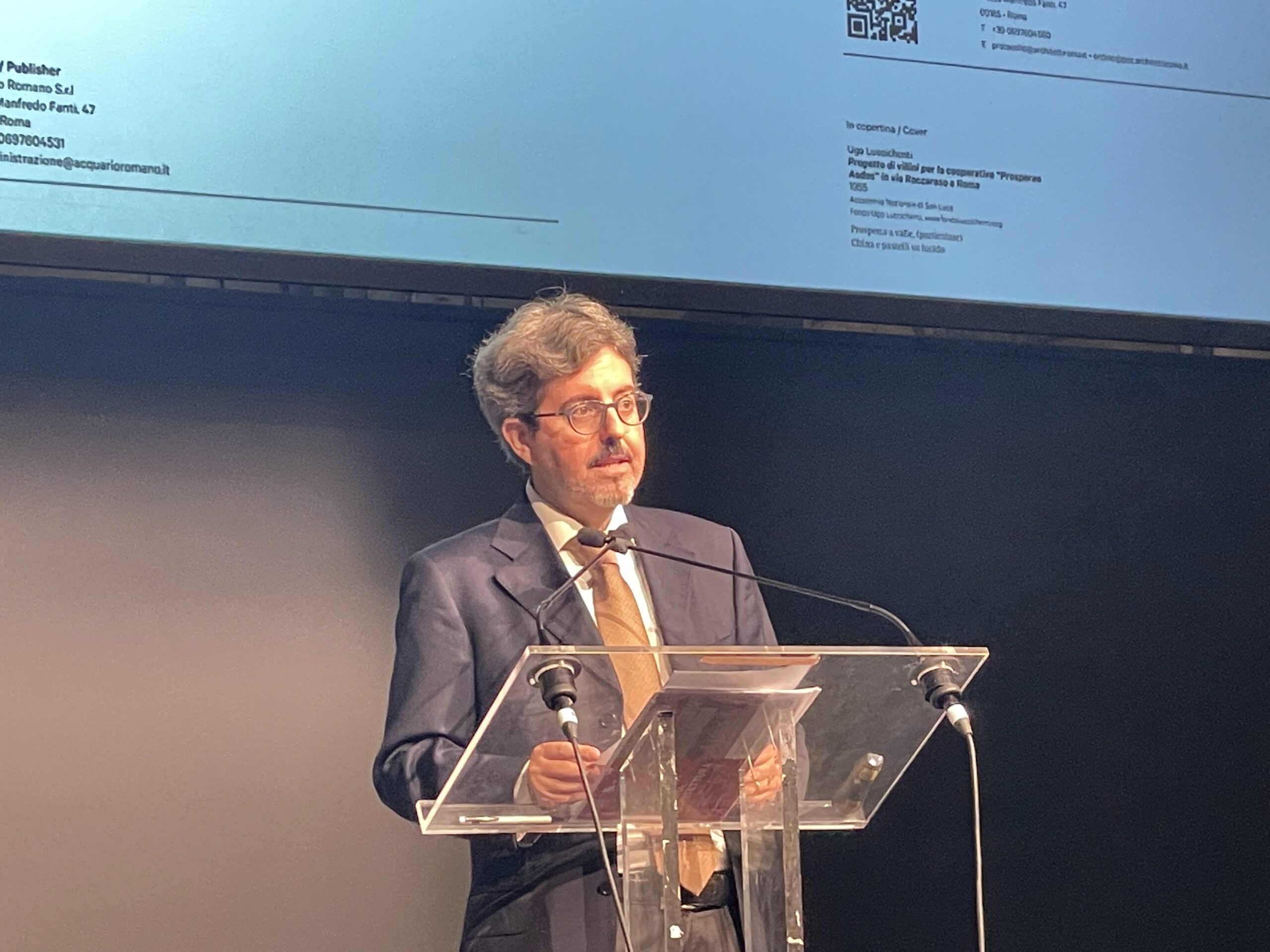 Ad aprire la giornata è stato Christian Rocchi, presidente dell’Ordine degli Architetti di Roma, che – dopo aver ringraziato Marco Maria Sambo «per l’importante progetto editoriale e culturale portato avanti», e l’Accademia Nazionale di San Luca, «partner naturale del nostro Ordine nel promuovere la cultura dell’architettura» – ha sottolineato l’urgenza di riflettere sulle difficoltà del fare architettura oggi e sul ruolo degli architetti. «I ritardi che spesso affliggono la realizzazione dei progetti sono dovuti principalmente a ostacoli di natura burocratica. È un problema che conosciamo bene: le procedure sono complesse, coinvolgono numerosi enti e questo rende difficile portare a termine le opere in tempi accettabili. Il percorso progettuale è articolato e la macchina amministrativa, purtroppo, non sempre riesce a stare al passo con la velocità del pensiero e della creatività progettuale». Anche per questi motivi, come Ordine degli Architetti di Roma – ha rivelato Rocchi – «abbiamo deciso di dedicare una delle prossime pubblicazioni della nostra rivista ai progetti recentemente realizzati, per analizzare lo stato attuale dell’architettura contemporanea e capire in che direzione stiamo andando. È un tema cruciale: oggi – anche grazie alle risorse a disposizione – si costruisce molto, ma troppo spesso, nei racconti mediatici o sui social, si dimentica di citare gli architetti che quei progetti li hanno ideati e resi possibili».