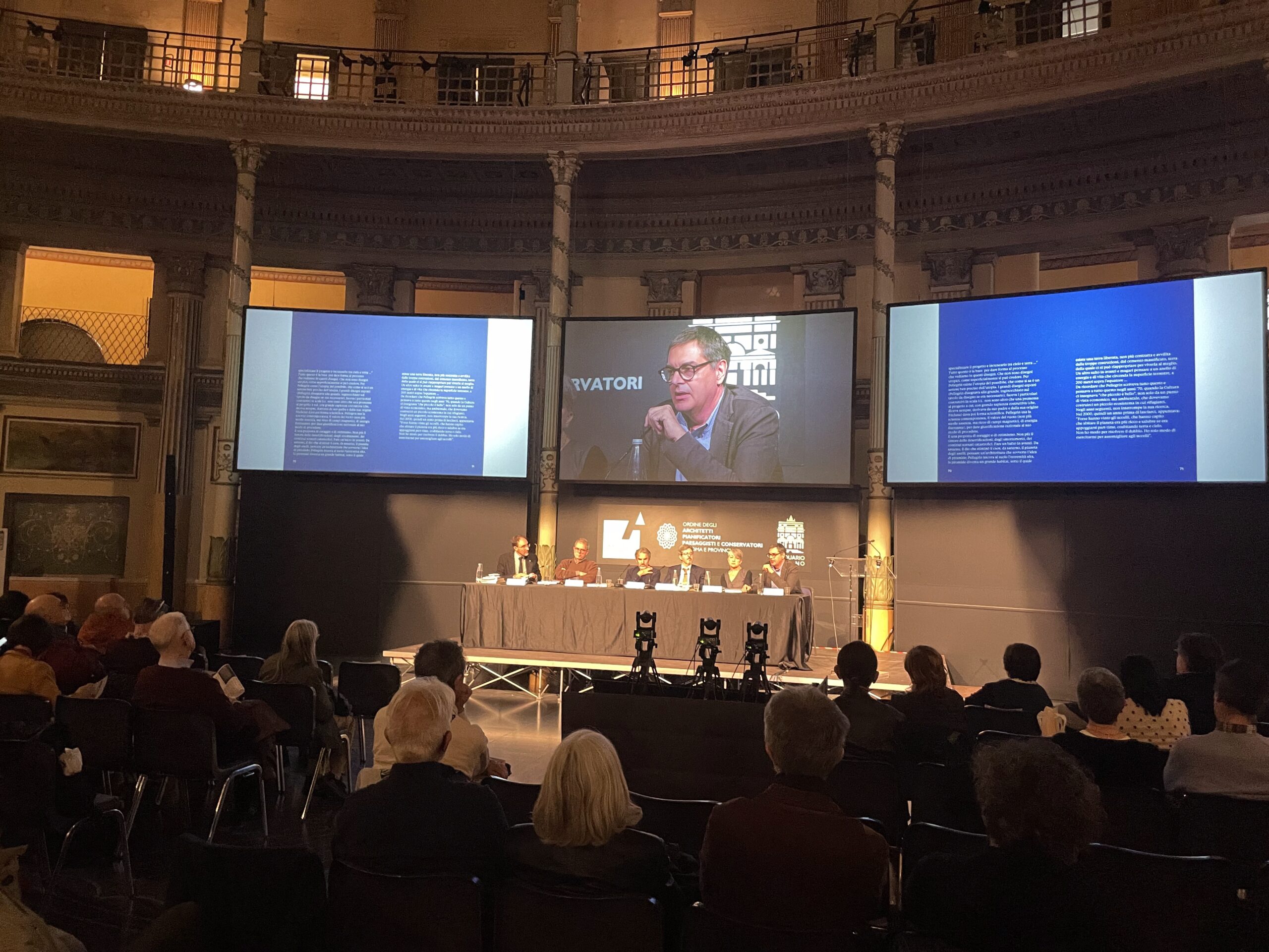 L’ultima parte della giornata è stata dedicata al volume «Opere del Giubileo e Architettura Sacra», catalogo della mostra che si è tenuta dal 26 maggio al 10 settembre 2025 alla Casa dell’Architettura -, con il coordinamento scientifico di Antonio Marco Alcaro e in collaborazione con Chiesa Oggi – Architettura e Comunicazione, rivista diretta da Caterina Parrello, anche consigliera dell’Ordine degli Architetti PPC di Milano.