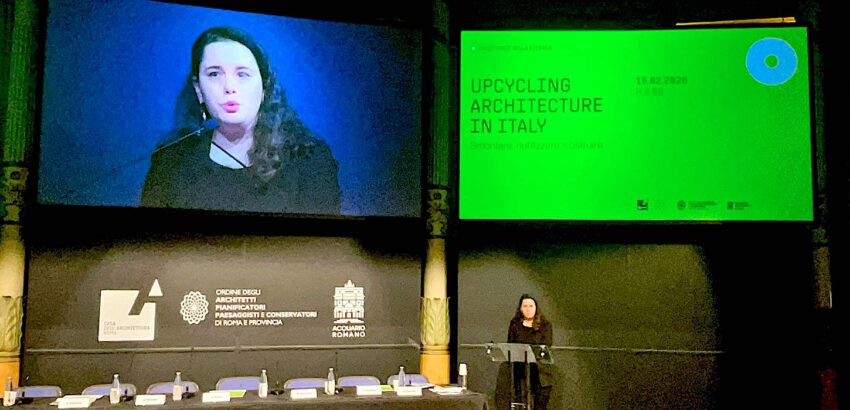 A presentare la giornata è stata Claudia Ricciardi, direttrice della Casa dell’Architettura, che ha collocato l’iniziativa nel quadro più ampio del programma culturale partito a gennaio: «Come Casa dell’Architettura – ha sottolineato – siamo impegnati, con la rassegna Contemporanea, ad accendere una luce sulla contemporaneità di Roma e sui temi emergenti, guardando la città da questa prospettiva. Quest’anno il focus è sulle Contaminazioni, intese come scelta consapevole di sovrapposizione e intersezione tra discipline apparentemente diverse. La giornata di oggi si inserisce in modo coerente in questo percorso, perché racconta il valore più profondo dell’architettura come disciplina capace di sintesi tra saperi differenti». La presentazione della ricerca PRIN, condotta da più università italiane – ha poi osservato Ricciardi – «affronta un tema emergente e urgente come l’upcycling, mostrando come possa essere letto sia nella contemporaneità sia nella storia dell’architettura italiana a partire dal secondo dopoguerra».
