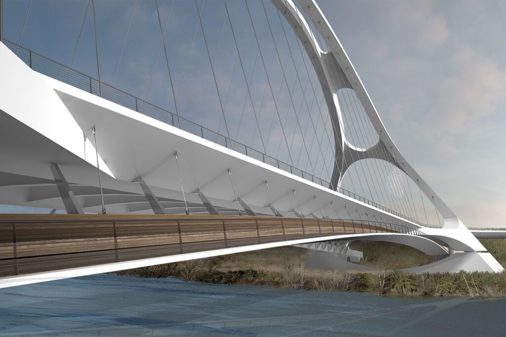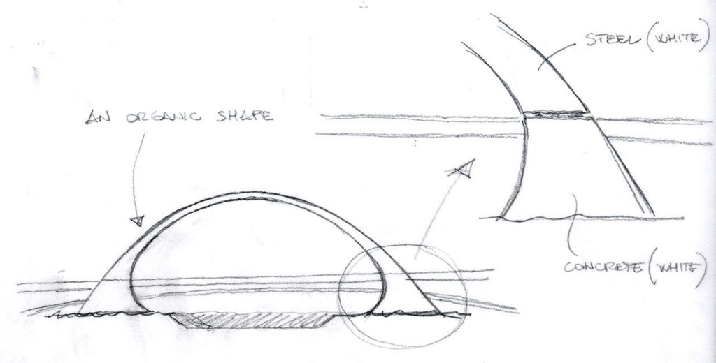 L’eccellenza tecnica dell’intervento si manifesta nella scelta della soluzione architettonica definita “bowstring”, ovvero a corda d’arco. In questo schema strutturale, l’impalcato orizzontale dialoga con un arco sospeso che configura una grande trave reticolare appoggiata agli estremi.