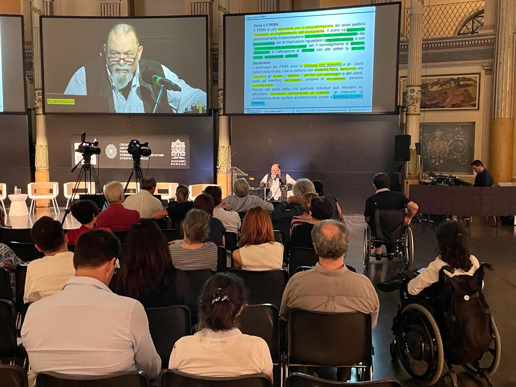 Massimiliano Maselli, assessore ai Servizi sociali, disabilità, terzo settore, servizi alla persona della Regione Lazio rivendica, tra le altre iniziative messe in campo, «l’approvazione in Giunta della proposta di legge sulla figura del garante dei disabili, che mancava». Andrea Catarci, assessore alle Politiche del personale, al decentramento, partecipazione e servizi al territorio per la Città dei 15 minuti, afferma che «guadagnare pezzi di accessibilità nella città deve essere un assillo», seppure nella consapevolezza dell’unicità della città e degli ostacoli da affrontare. «Un assillo – dice – che deve guidarci nel ragionare sulle innovazioni da introdurre con la programmazione ordinaria, ma anche sfruttando l’utilizzo delle risorse straordinarie, a partire dal Pnrr, dagli eventi del Giubileo e, si spera, anche dell’Expo». Guglielmo Calcerano, assessore al Patrimonio e lavori pubblici del X Municipio, racconta la grande difficoltà incontrata nel percorso verso l’elaborazione del Peba, legata alla scarsa capacità amministrativa del Municipio. «Il Peba – riferisce – è un documento veramente complesso, in questo momento pensare che una quota del nostro personale possa essere impegnata in pianta stabile all’elaborazione di questo piano non credo sia realistico». Da qui l’esigenza di «mettere a gara la progettazione del Peba, sempre nell’ambito di un percorso partecipato».