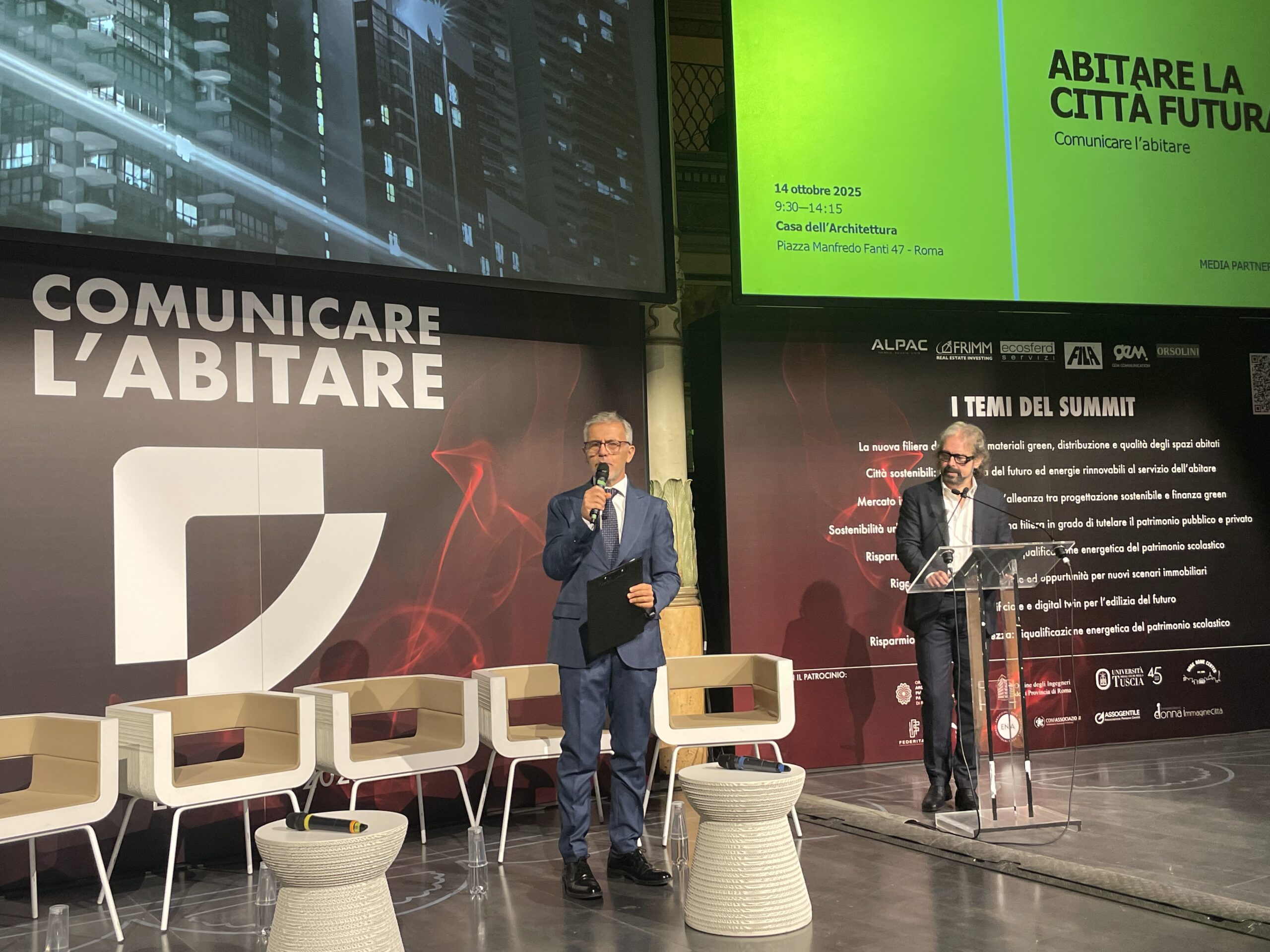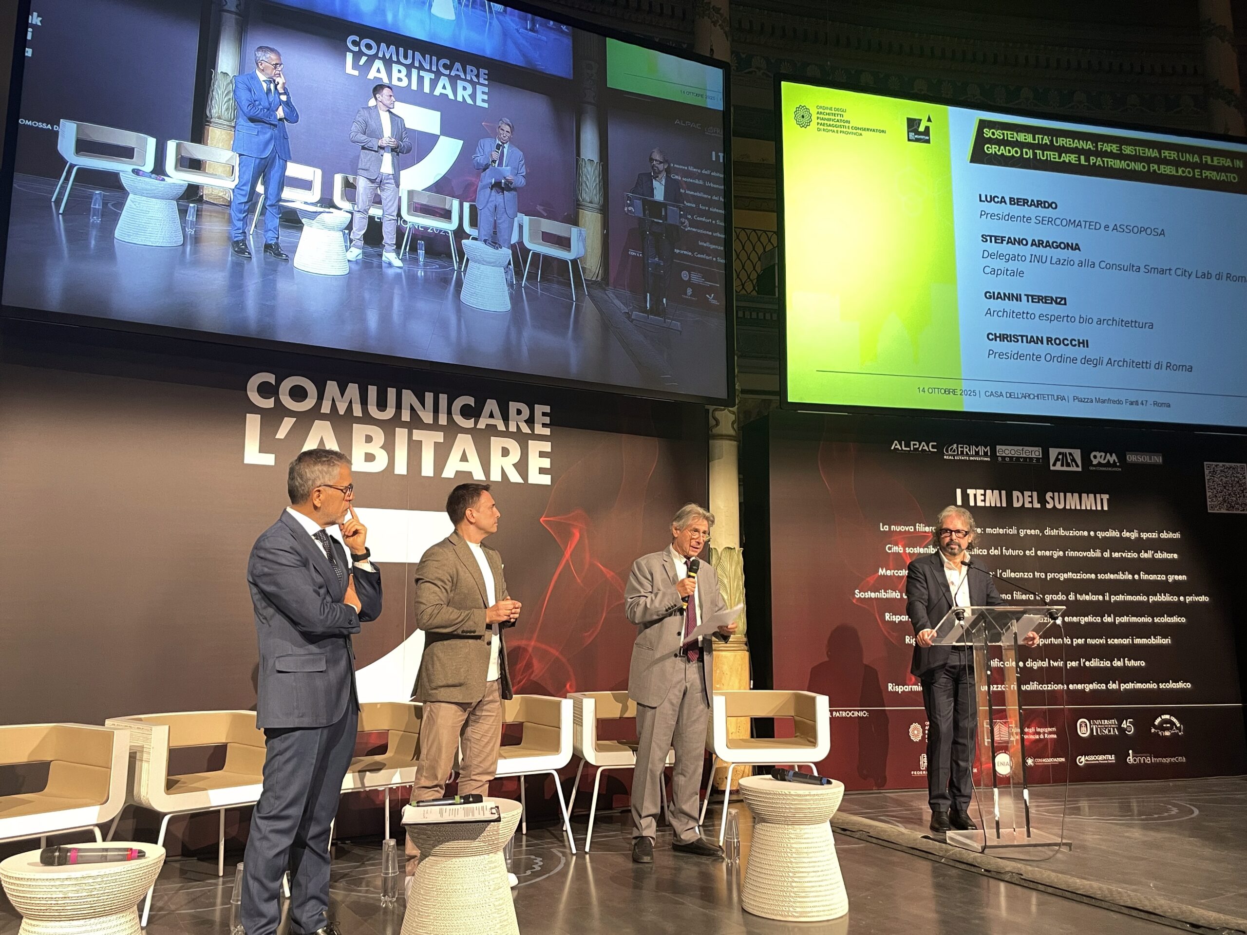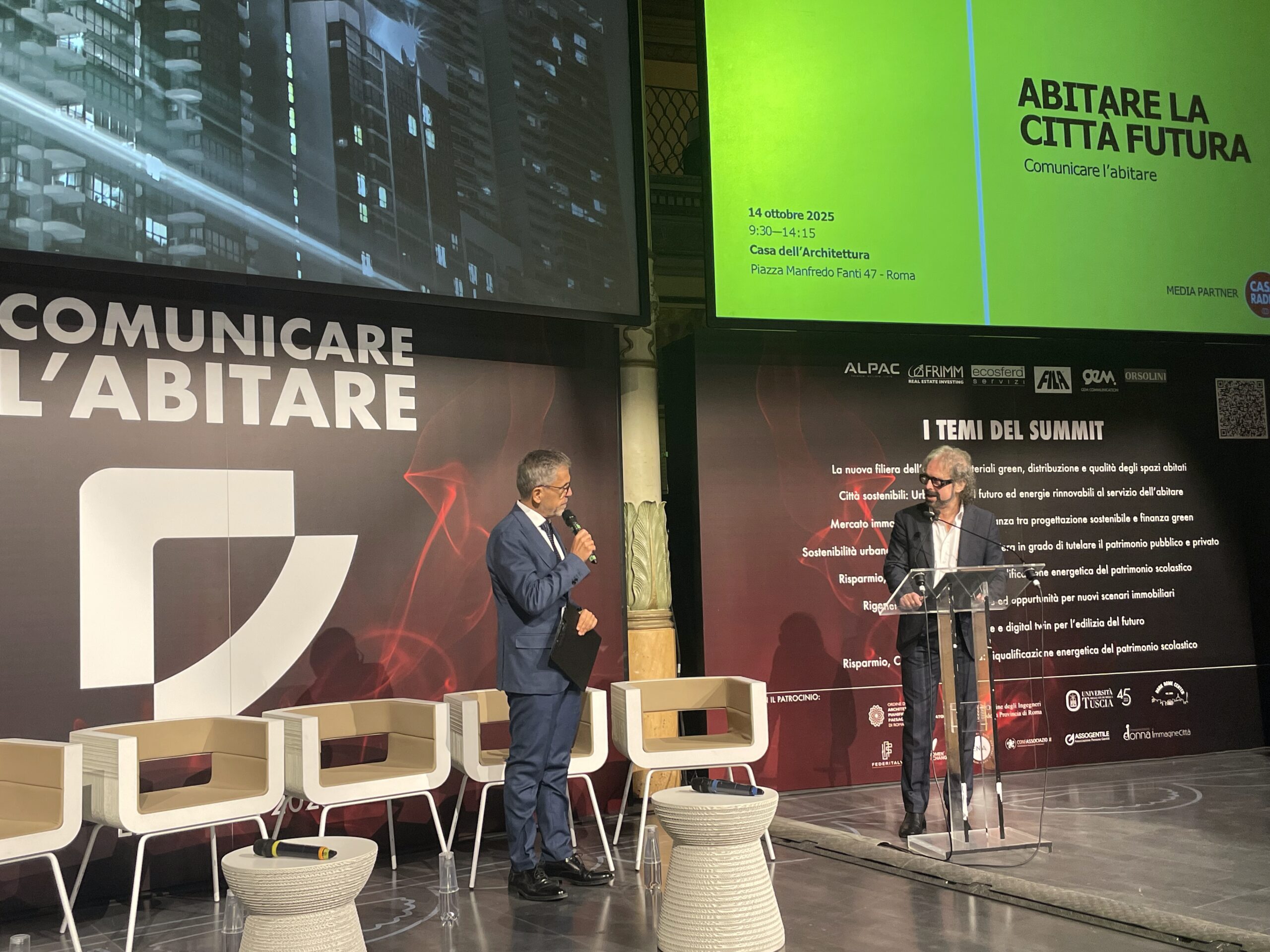 Un laboratorio di confronto aperto, in cui professionisti, imprese e istituzioni possono condividere visioni e strumenti per costruire una città più sostenibile, intelligente e sociale. Provando a rispondere insieme a domande come: in quale modo si vivrà nelle città di domani? Quali strumenti, tecnologie e visioni sono – e saranno – necessari per costruire spazi urbani sostenibili, sicuri e inclusivi, in grado di rispondere alle nuove sfide ambientali e sociali? Questioni che animano il dibattito contemporaneo sull’abitare: un tema che non riguarda solo l’architettura ma la qualità della vita, le politiche pubbliche, le relazioni tra individui e comunità. In questo scenario si è inserito «Abitare la città futura», l’incontro che si è svolto ieri, 14 ottobre 2025, presso la Casa dell’Architettura di Roma, nell’ambito del summit «Comunicare l’abitare» (13-14 ottobre), con il patrocinio dell’Ordine degli Architetti PPC di Roma e provincia e in collaborazione con Casa Radio come media partner.