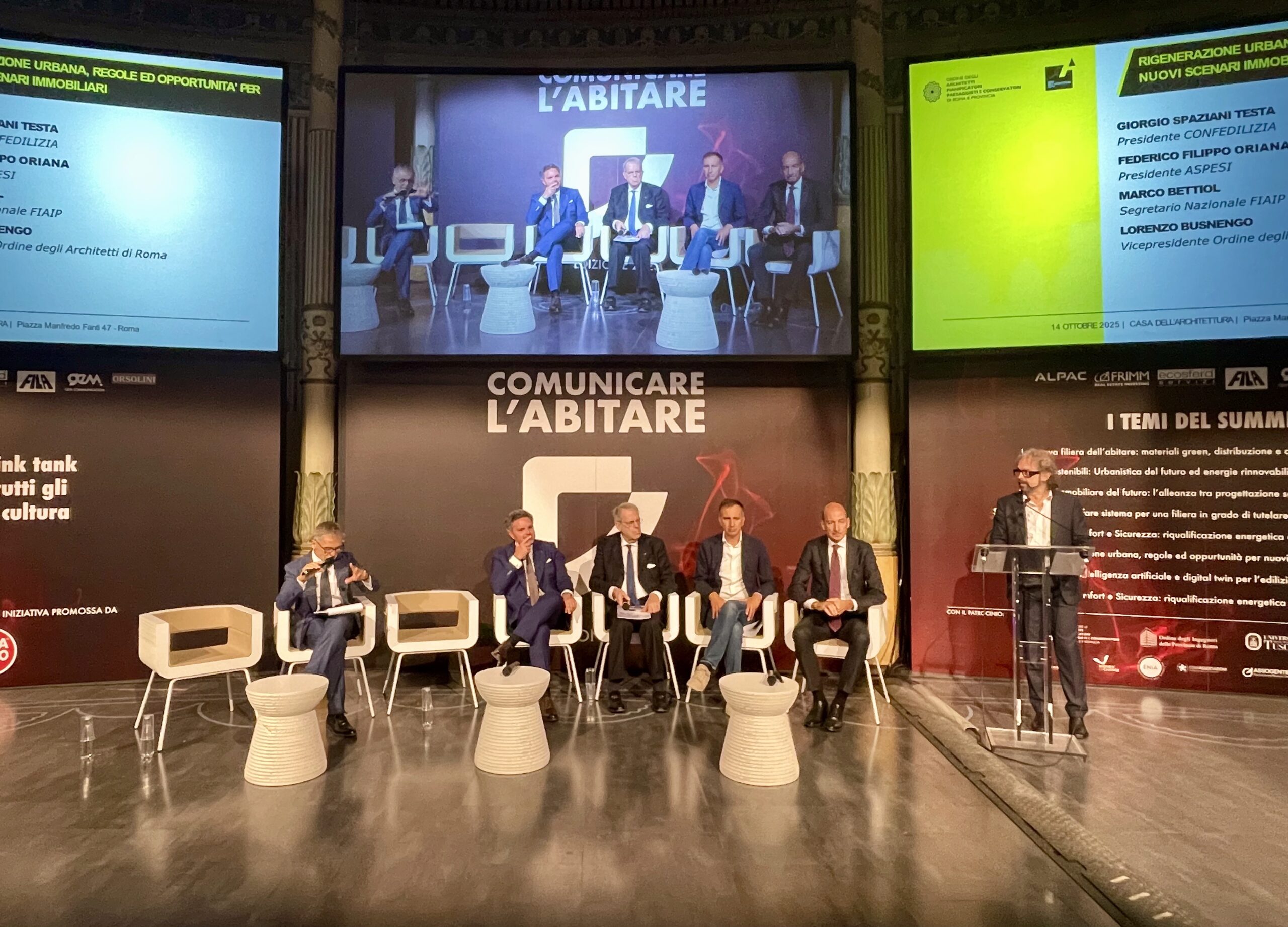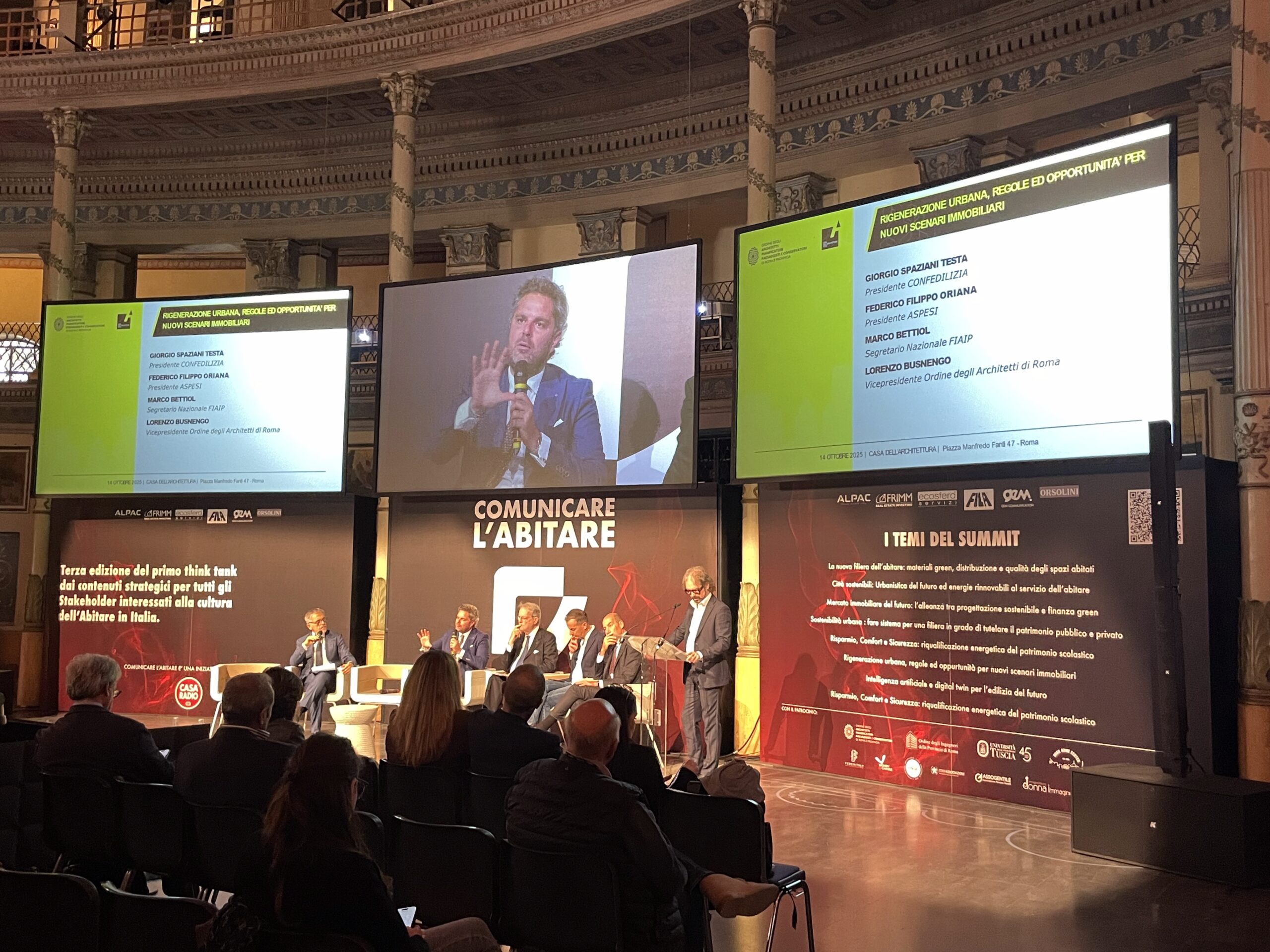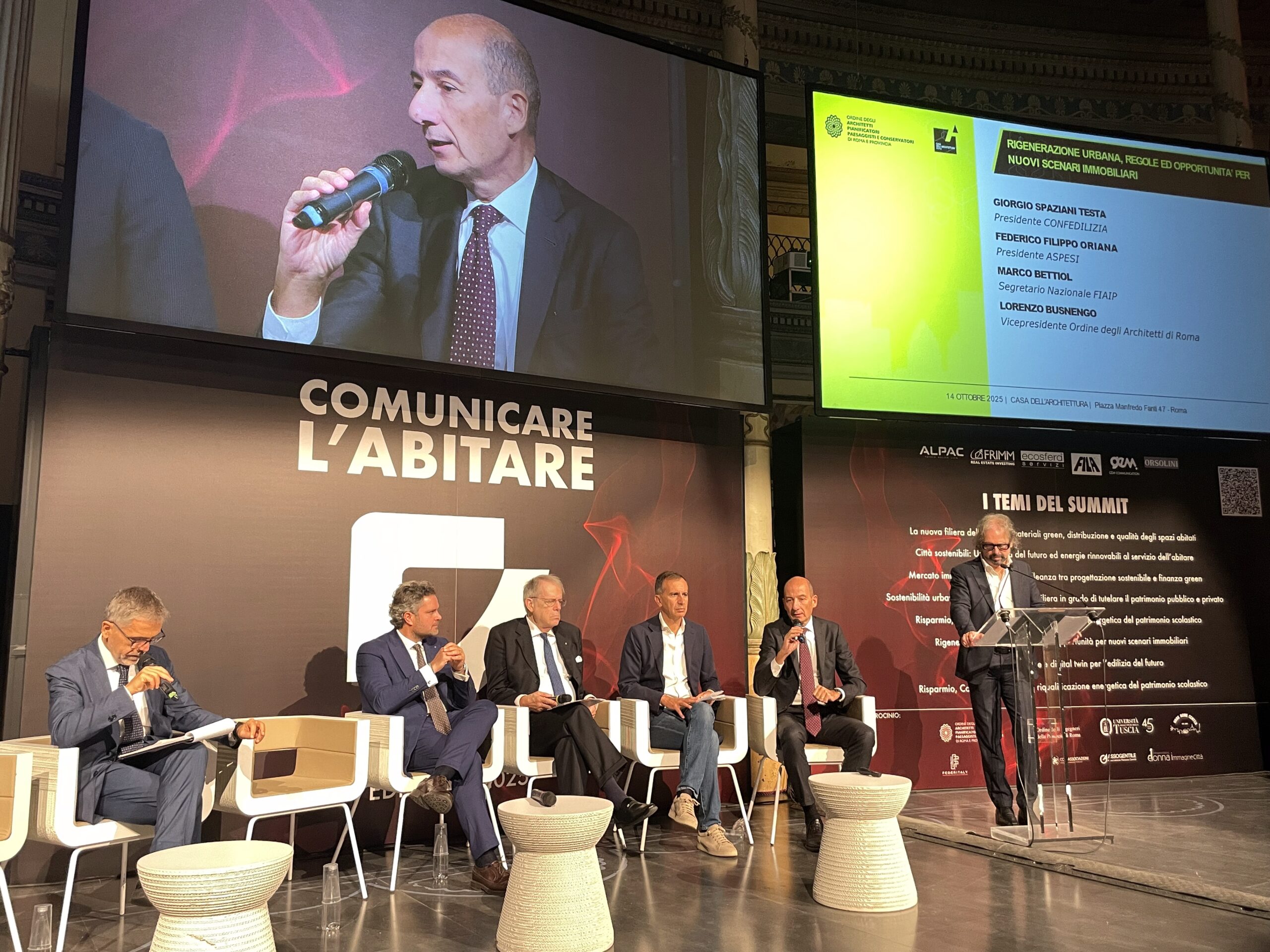 Al panel che ha messo al centro la trasformazione delle città, in chiave rigenerazione, analizzando anche le opportunità offerte dai provvedimenti in corso e le criticità normative, sono intervenuti – dialogando su «regole e opportunità per nuovi scenari urbani», Giorgio Spaziani Testa, presidente di Confedilizia; Federico Filippo Oriana, presidente Aspesi; Marco Bettiol, segretario nazionale Fiaip; e Lorenzo Busnengo, vicepresidente Ordine degli Architetti PPC di Roma e provincia.