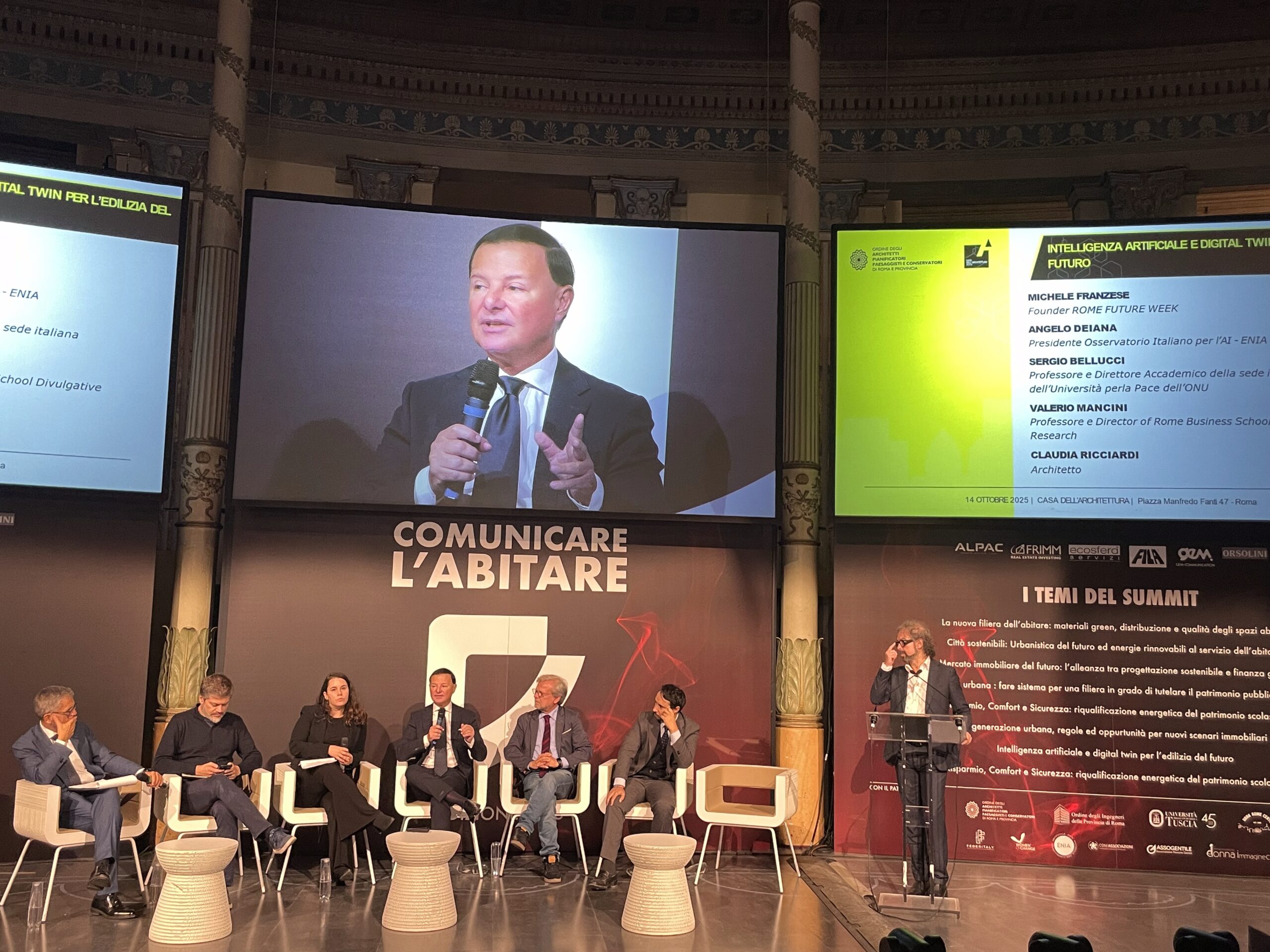 Il quarto e ultimo panel ha esplorato le nuove frontiere dell’edilizia digitale, dall’integrazione di intelligenza artificiale, Bim, digital twin nei processi costruttivi alla prefabbricazione e alla costruzione off-site. Ampio lo spettro dei relatori con Michele Franzese, founder Rome Future Week; Angelo Deiana, presidente Osservatorio Italiano per l’Ai dell’Enia; Sergio Bellucci, professore e direttore accademico della sede italiana dell’Università per la Pace dell’Onu; Valerio Mancini, professore e director della Rome Business School Divulgative Research; e Claudia Ricciardi, architetto, delegata Casa dell’Architettura.